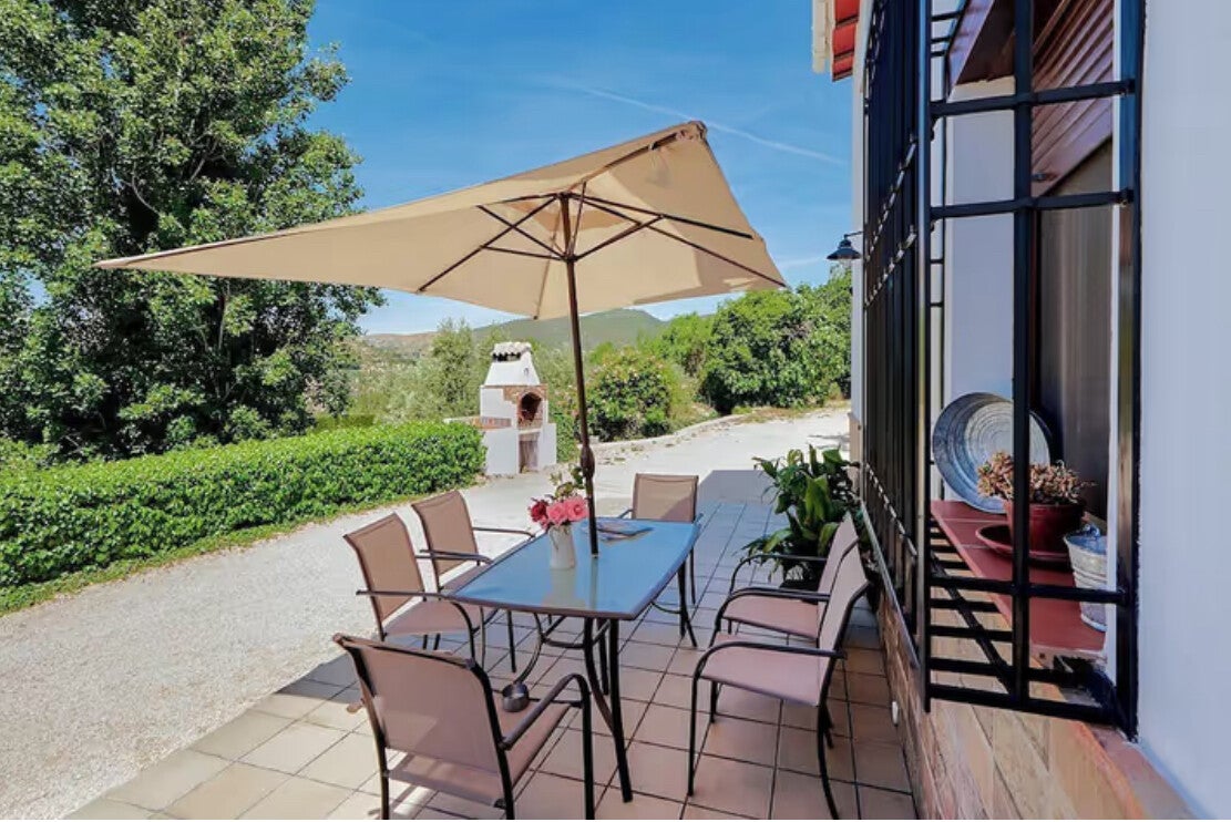 En el exterior podrás disfrutar de una amplia zona ajardinada con vistas panorámicas a Sierra Mágina, piscina privada, porche, cocina exterior equipada con barbacoa y paellera, baño, huerto ecológico, gallinero y zona de aparcamiento.